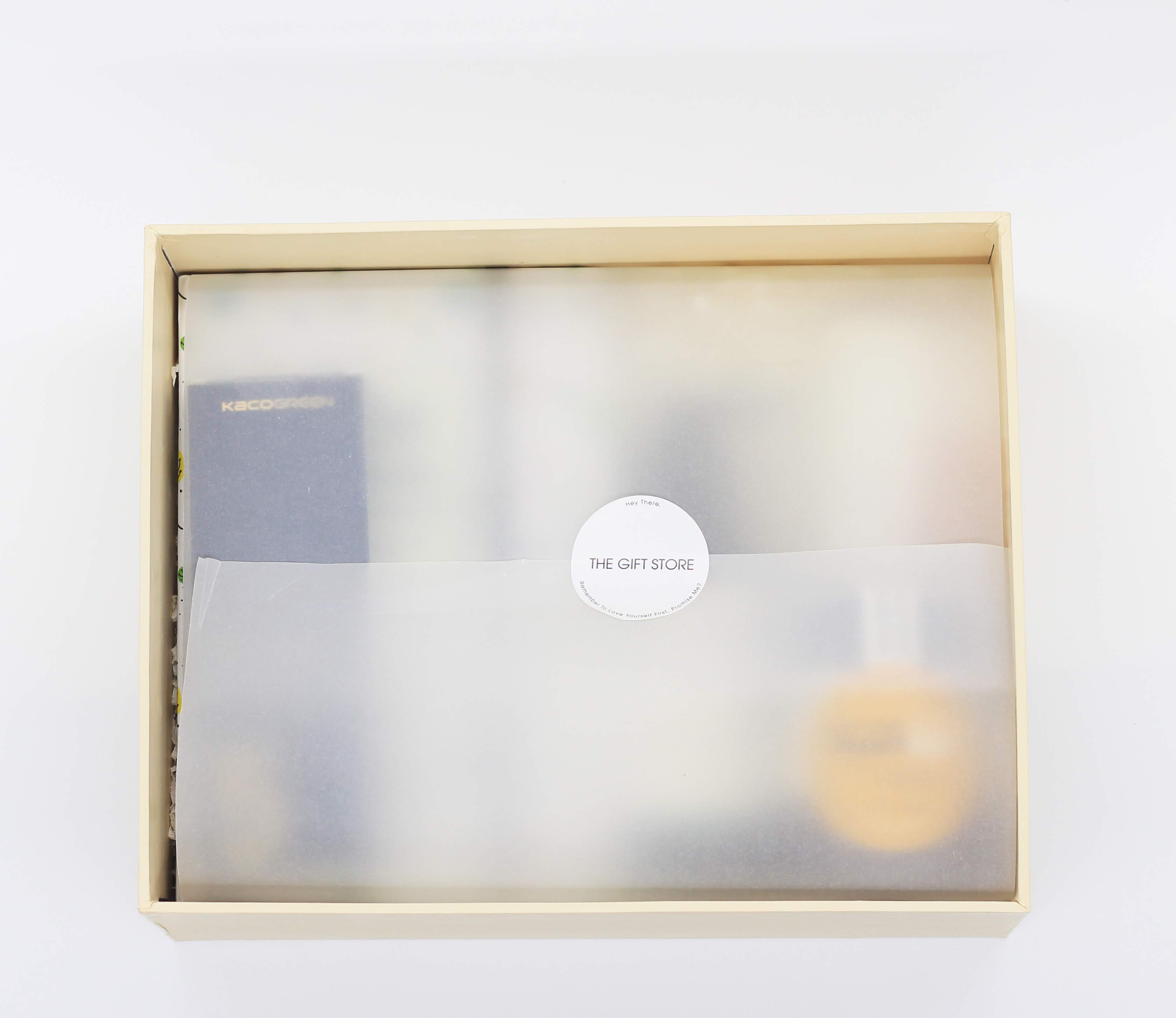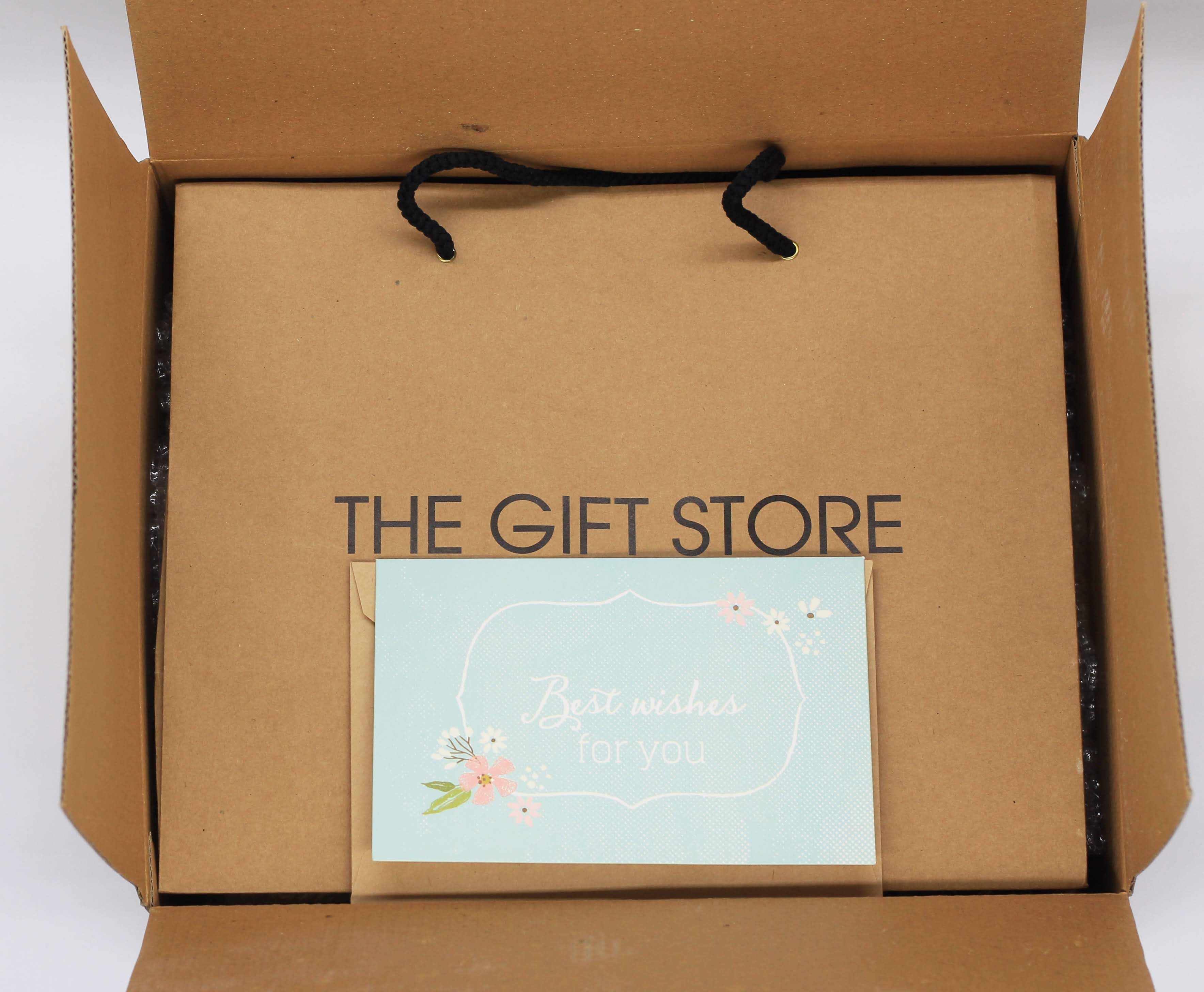 | Từ các sản phẩm bạn chọn, quà sẽ được cho vào hộp, và bọc bằng giấy gói để giảm tối thiểu xáo trộn khi vận chuyển.